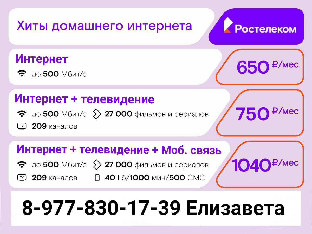 Получить развернутую консультацию и оставить заявку на подключение сервисов можно у персонального менеджера Ростелеком Елизаветы Закиевой +7(977)830-17-39 (WhatsApp, Telegram).