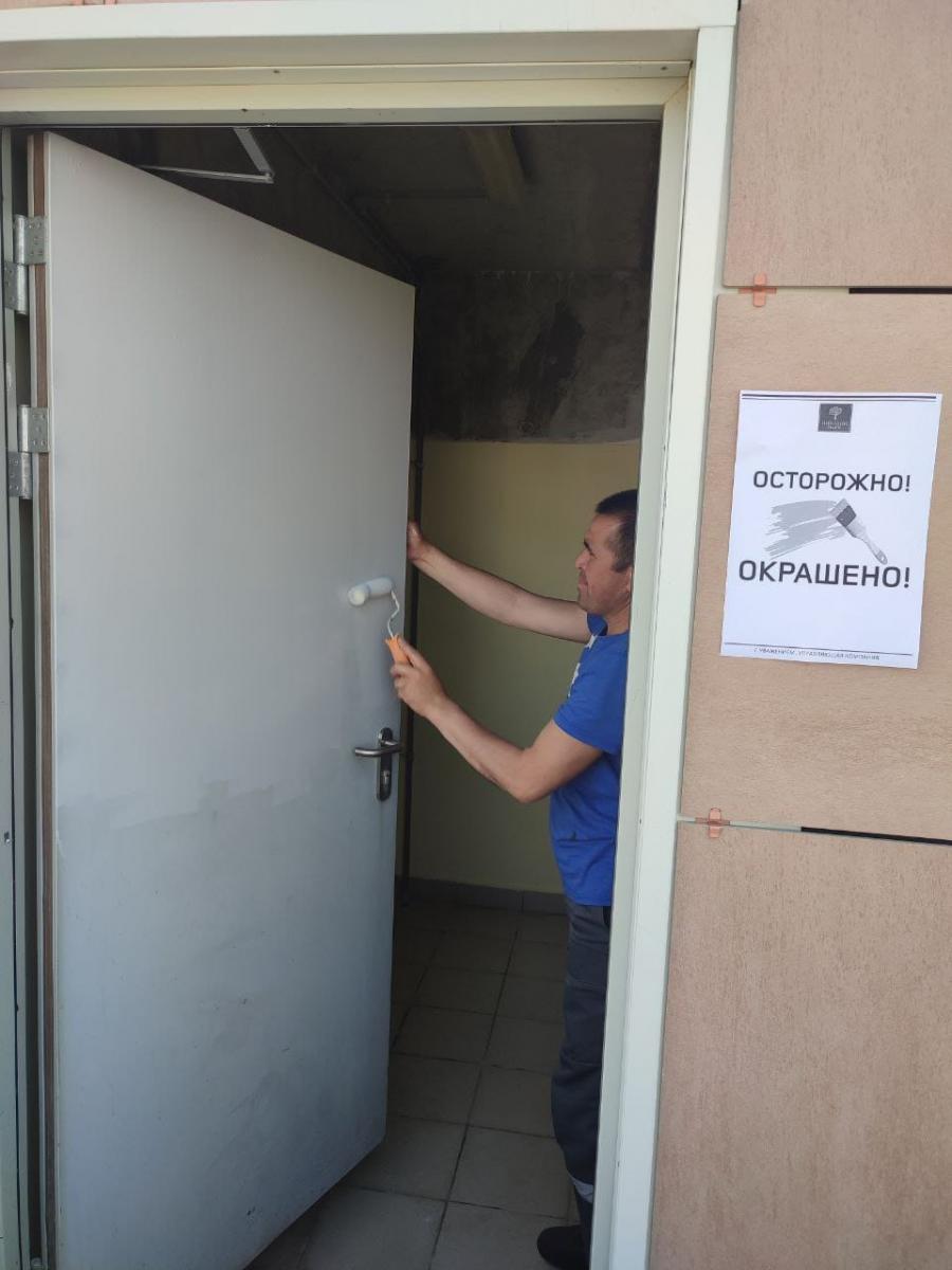 На сегодняшней день произведены работы по покраске въездной группы и входных дверей,а также декоративных элементов гаража-автостоянки.