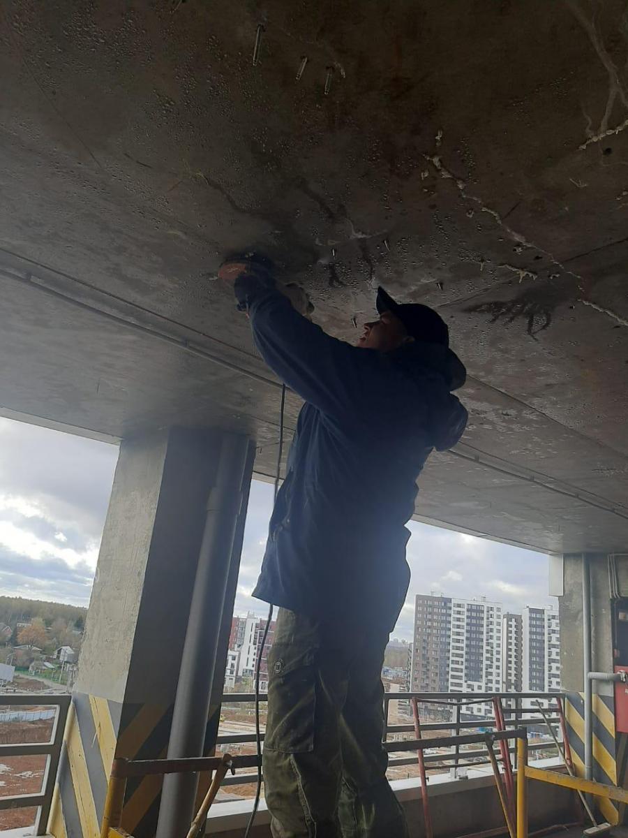 Работы проводит подрядная организация, в рамках гарантийных обязательств Застройщика.