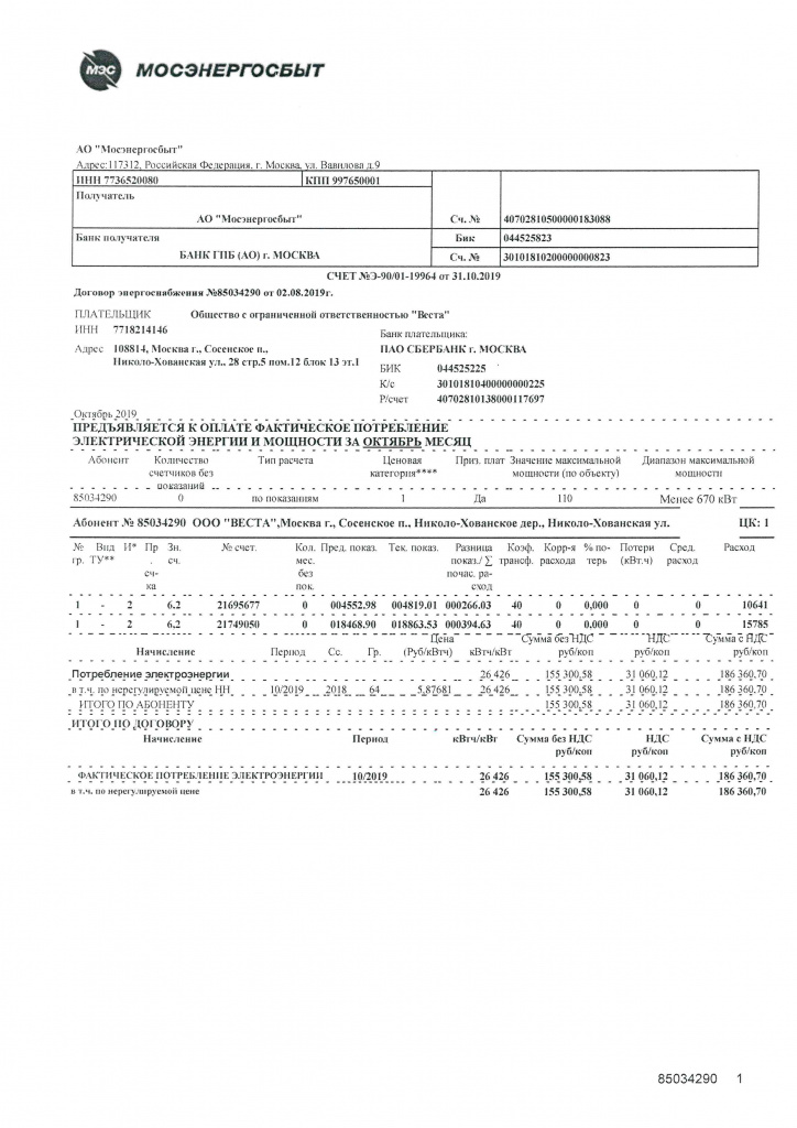 Как ранее сообщалось, руководством ООО «ВЕСТА» принято решение о ежемесячном размещении счета АО Мосэнергосбыт на официальном сайте организации для обеспечения большей степени информированности владельцев машино-мест.